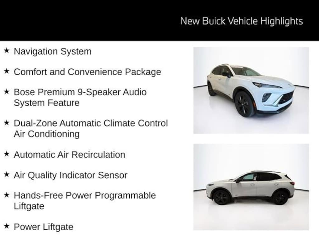 White 2026 Buick Envision Sport Touring AWD 9-Speed Automatic 2.0L Turbocharged Envision Sport Touring, 4D Sport Utility, 2.0L Turbocharged, 9-Speed Automatic, AWD, White, Ebony Seats With Sky Leather, 3-Channel Programmable Universal Home Remote, Air Quality Indicator Sensor, Automatic Air Recirculation, Bose Premium 9-Speaker Audio System Feature, Comfort and Convenience Package, Dual-Zone Automatic Climate Control Air Conditioning, Exterior Parking Camera Rear, Hands-Free Power Programmable Liftgate, Heated Driver and Front Passenger Seats, Heated Steering Wheel, Navigation System, Power Liftgate.