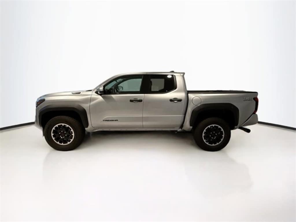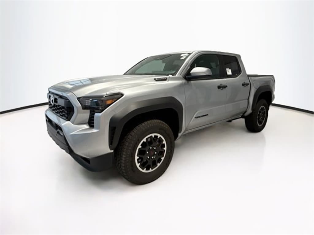 Silver 2025 Toyota Tacoma Hybrid TRD Off Road 4WD 8-Speed Automatic 2.4L I4 PDI Hybrid Turbocharged DOHC 16V Tacoma Hybrid TRD Off Road, 4D Crew Cab, 2.4L I4 PDI Hybrid Turbocharged DOHC 16V, 8-Speed Automatic, 4WD, Silver, 12, 8-Way Power Driver & Passenger Seat Adjusters, AC Power Inverter, Apple CarPlay/Android Auto, Digital Key Capability, Exterior Parking Camera Rear, Front & Rear Parking Assist w/Automatic Braking, Heated Front Seats, Heated Leather-Trimmed Steering Wheel, Integrated Trailer Brake Controller, JBL Premium Audio, Moon Roof, Navigation system: Drive Connect (1 year trial) includes Cloud Navigation with real time traffic and Google POI, Power Horizontal Rear Window, Pre-Wired Auxiliary Switches, Qi-Compatible Wireless Charging, TRD Off Road Upgrade Package.