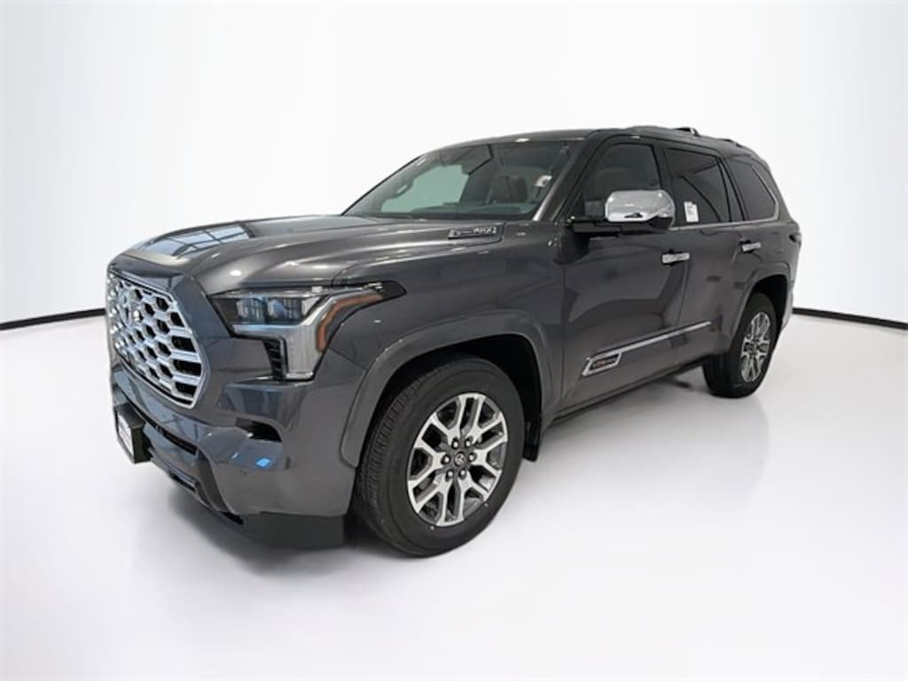 Gray 2026 Toyota Sequoia 1794 Edition 4WD 10-Speed Automatic V6 Hybrid Sequoia 1794 Edition, 4D Sport Utility, V6 Hybrid, 10-Speed Automatic, 4WD, Gray, Saddle Tan Premium Lth Leather, 1794 Grade Package, Apple CarPlay/Android Auto, Exterior Parking Camera Rear, Heated front seats, Heated rear seats, Heated steering wheel, Navigation system: Drive Connect (1 year trial) includes Cloud Navigation with real time traffic and Google POI, Power Liftgate, Power moonroof, TRD Performance Package, Ventilated front seats, Ventilated rear seats.Recent Arrival!