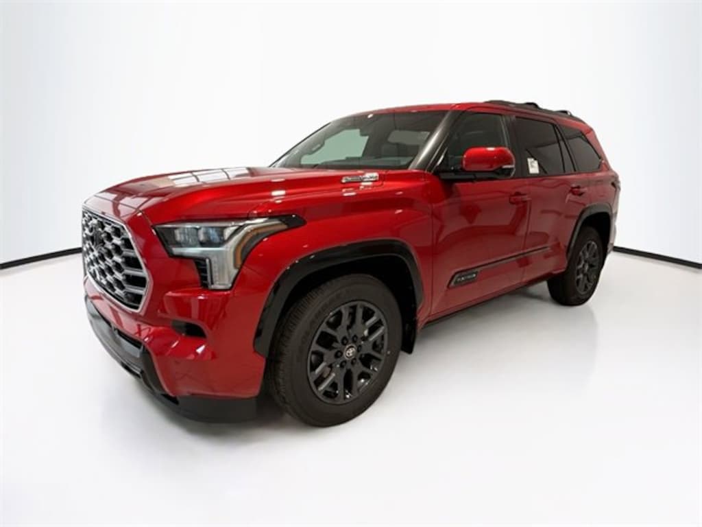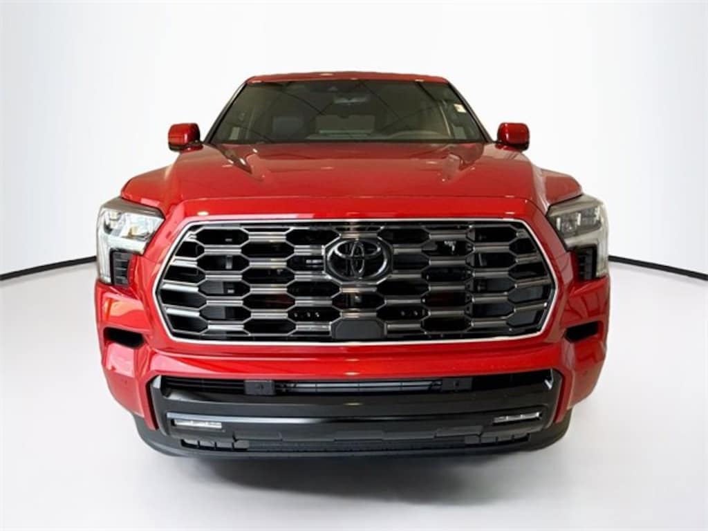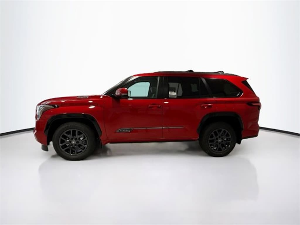 Red 2026 Toyota Sequoia Platinum 4WD 10-Speed Automatic V6 Hybrid Sequoia Platinum, V6 Hybrid, 10-Speed Automatic, 4WD, Red, Blk Premium Lth Leather, ABS brakes, Active Cruise Control, Alloy wheels, Compass, Electronic Stability Control, Front dual zone A/C, Heated & Ventilated Front Seats, Heated door mirrors, Heated front seats, Heated rear seats, Illuminated entry, Low tire pressure warning, Power Liftgate, Power moonroof, Premium Leather Seat Trim, Remote keyless entry, Traction control.