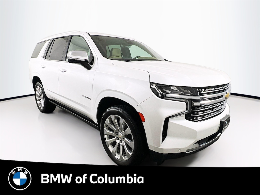 Back Up Camera, Heated Seats, 3rd Row Seats, Moonroof, Leather, Carfax One Owner, Tahoe Premier, 4D Sport Utility, EcoTec3 5.3L V8, 10-Speed Automatic with Overdrive, 4WD, Iridescent Pearl Tricoat, Jet Black/Maple Sugar w/Perforated Leather Seat Trim, 15" Diagonal Multi-Color Head-Up Display, 1st & 2nd Row Color-Keyed Carpeted Floor Mats, 2-Speed Active Electronic AutoTrac Transfer Case, 3rd Row 60/40 Power-Folding Split-Bench Seat, 3rd row seats: split-bench, Adaptive suspension, Apple CarPlay/Android Auto, Auto High-beam Headlights, Auto-Dimming Inside Rear-View Mirror, Auto-leveling suspension, Bose 10-Speaker Centerpoint Surround Audio Sys Ft, Bright Front & Rear Door Sill Plates, Chrome Door Handles w/Body-Color Strip, Chrome Mirror Caps, Color-Keyed Carpeting Floor Covering, Driver & Front Outboard Passenger Airbags, Dual Exhaust System, Dual-Pane Power Panoramic Sunroof, Electronic Stability Control, Enhanced Display & Alert Package, Enhanced Driver Information Center, Floor Console, Front dual zone A/C, Hands-Free Rear Power Programmable Liftgate, HD Surround Vision, Heated & Ventilated Driver & Front Passenger Seats, Heated 2nd Row Outboard Seats, Heated Driver & Front Passenger Seats, Heated rear seats, Heated Steering Wheel, Heated steering wheel, Hill Descent Control, Infotainment Display, Inside Rearview Auto-Dimming Rear Camera Mirror, Lane Change Alert w/Side Blind Zone Alert, LED Daytime Running Lamps, License Plate Front Mounting Package, Memory Settings, Navigation System, Outside Heated Power-Adjustable Mirrors, Perforated Leather Seat Trim, Power Liftgate, Power Release 2nd Row Bucket Seats, Power Tilt & Telescopic Steering Column, Power-Retractable Assist Steps, Preferred Equipment Group 1LZ, Rain sensing wipers, Rear Camera Mirror Washer, Rear Cross Traffic Alert, Rear Pedestrian Alert, Remote Start, Safety Alert Seat, Set of 4 Wheel Locks (LPO), SiriusXM Radio w/360L, Universal Home Remote, Ventilated front seats, Wheels: 22" x 9" Polished Aluminum (RVA), Wireless Charging, Wrapped Steering Wheel.