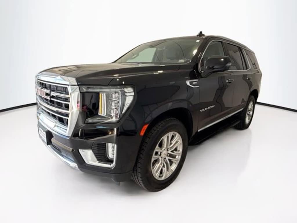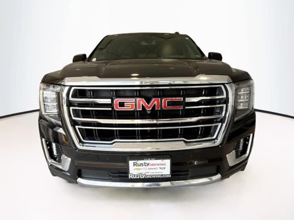 Onyx Black 2021 GMC Yukon SLT 4WD 10-Speed Automatic with Overdrive EcoTec3 5.3L V8 Yukon SLT, 4D Sport Utility, EcoTec3 5.3L V8, 10-Speed Automatic with Overdrive, 4WD, Onyx Black, Jet Black Leather, 12-Way Power Seat Adjusters, 2 Presets For Outside Rearview Mirrors, 2 Presets For Power Driver Seat, 3rd Row 60/40 Power-Folding Split-Bench Seat, 3rd row seats: split-bench, Apple CarPlay/Android Auto, Bose 9-Speaker Stereo Audio System Feature, Bright Chrome Bodyside Moldings, Bright Front & Rear Door Sill Plates, Chrome Door Handles w/Body-Color Strip, Dual-Pane Panoramic Power Sunroof, Front & Rear Park Assist, Front dual zone A/C, Hands-Free Power Programmable Rear Liftgate, HD Radio, HD Surround Vision, Heated & Ventilated Driver & Front Passenger Seats, Heated 2nd Row Outboard Position Seats, Heated Automatic Steering Wheel, Heated Driver & Front Passenger Seats, Inside Rear-View Auto-Dimming Mirror, License Plate Front Mounting Package, Outside Heated Power-Adjustable Mirrors, Power Release 2nd Row 60/40 Split-Folding Bench Seat, Power Tilt & Telescopic Steering Column, Preferred Equipment Group 4SA, Radio: AM/FM/SiriusXM w/Navigation, Rear Media & Nav Package, Rear Pedestrian Alert, Rear Seat Media System, Safety Alert Seat, SiriusXM w/360L, SLT Luxury Package, Universal Home Remote, Ventilated front seats.