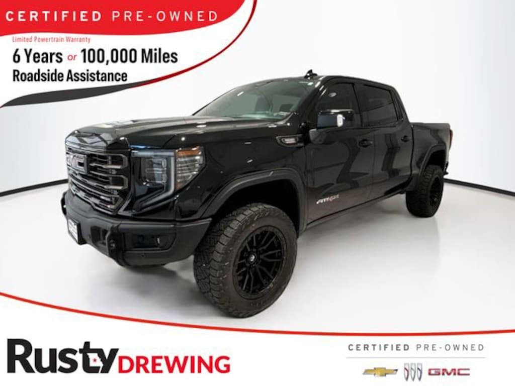 Certified. Onyx Black 2024 GMC Sierra 1500 AT4X 4WD 10-Speed Automatic 3.0L I6 Sierra 1500 AT4X, 4D Crew Cab, 3.0L I6, 10-Speed Automatic, 4WD, Onyx Black, Obsidian Rush Leather, 120-Volt Bed Mounted Power Outlet, 120-Volt Interior Power Outlet, 16-Way Power Driver Seat Adjuster w/Lumbar, 16-Way Power Passenger Seat Adjuster w/Lumbar, 2 Charge/Data USB Ports Inside Center Console, 2 Type-C Charge-Only Rear USB Ports, 2 USB Ports, 3.23 Rear Axle Ratio, Apple CarPlay/Android Auto, Bed View Camera, Bose Premium Series w/12-Speaker System, Color-Keyed Carpeting Floor Covering, Deep-Tinted Glass, Driver-Selectable Full-Locking Front Differential, Driver-Selectable Full-Locking Rear Differential, Electric Rear-Window Defogger, Floor-Mounted Center Console, Front Prem Floor Liners w/Removable Carpet Insert, Front Rain-Sensing Wipers, Gloss Black Header w/Drk Nickel Grille Insert Bars, GMC Connected Access Capable, HD Surround Vision, Heated 2nd Row Outboard Seats, Heated Driver & Front Outboard Passenger Seating, Heated front seats, Heated rear seats, Heated steering wheel, Heavy-Duty Air Filter, Hill Descent Control, Hitch Guidance, Hitch View, In-Vehicle Trailering System App, Integrated Trailer Brake Controller, Keyless Open & Start, LED Cargo Area Lighting, Multicolor 15 Diagonal Head-Up Display, MultiPro Tailgate Audio System by Kicker (LPO), Navigation System, OnStar & GMC Connected Services Capable, Perimeter Lighting, Power Door Locks, Power Front Passenger Windows w/Express Up/Down, Power Front Windows w/Driver Express Up/Down, Power moonroof, Power Rake & Telescoping Steering Column, Power Rear Windows w/Express Down, Power Sliding Rear Window w/Rear Defogger, Power Sunroof, Preferred Equipment Group 4SG, Push Button Start, Rear Cross Traffic Braking, Rear Pedestrian Detection, Rear Prem Floor Liners w/Removable Carpet Insert, Rear Wheelhouse Liners, Remote Vehicle Starter System, SiriusXM w/360L, Spray-On Pickup Bedliner w/AT4X Logo, Steering Wheel Audio Controls, Theft Deterrent System (Unauthorized Entry), Trailer Camera Provisions, Trailer Side Blind Zone Alert, Trailer Tire Pressure Monitor System, Trailering Package, Ultrasonic Front & Rear Park Assist, Universal Home Remote, Ventilated Driver & Front Passenger Seats, Wi-Fi Hotspot Capable, Wireless Apple CarPlay/Wireless Android Auto, Wireless Charging.